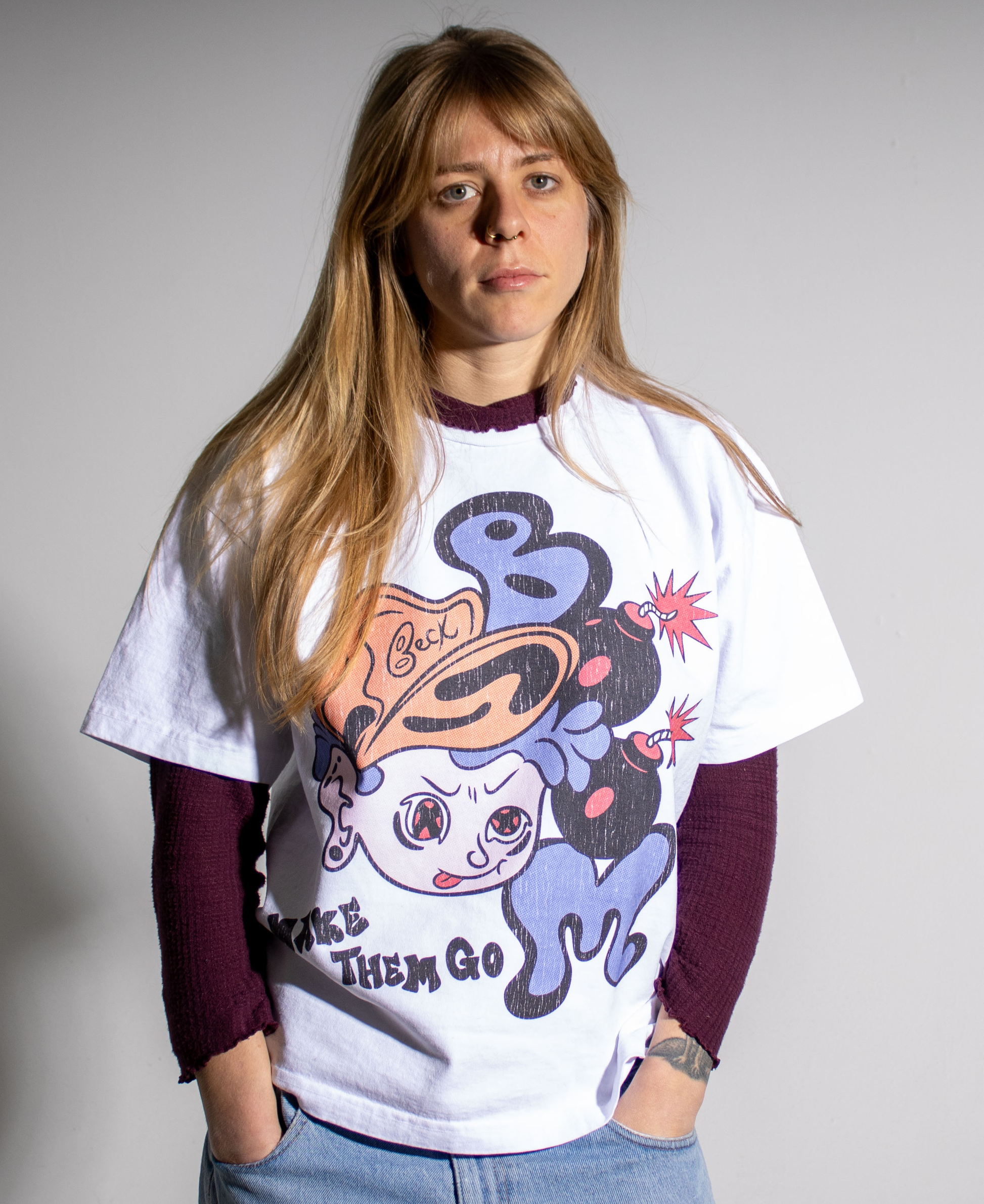 Machine wash with cold water. Wash with like colors. Use non-chlorine bleach. Hang dry only. Do not iron printed part. Turn shirt inside-out when washing to preserve graphic print.